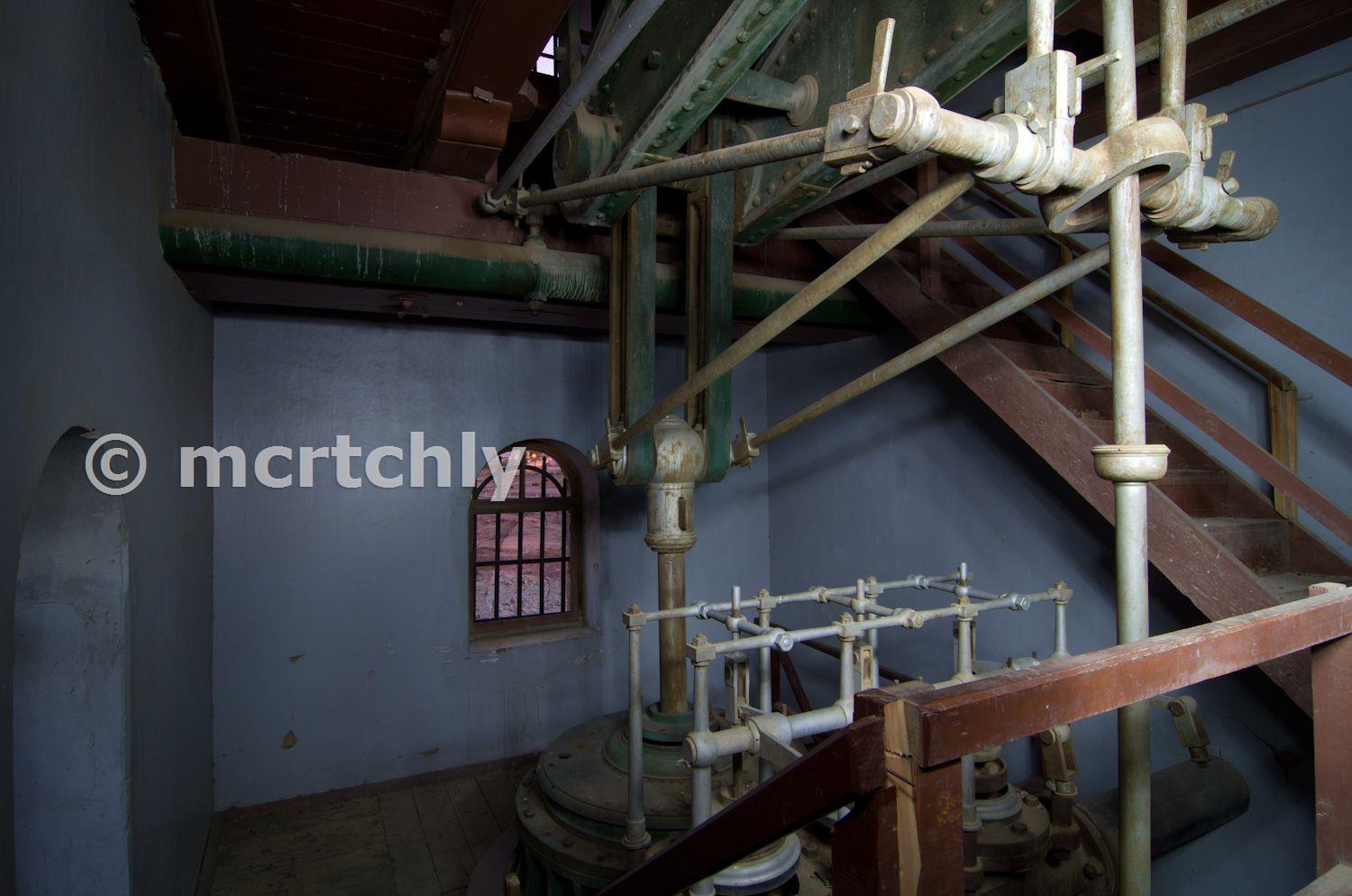 View of the middle chamber of the engine house showing the top of the cylinder and the valve gear