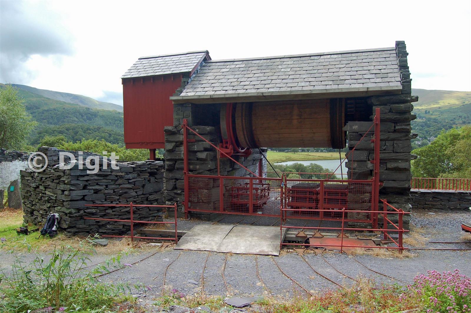 View from rear of V2 Drumhouse showing the 4 tracks from the V3 incline the waste track to the right and the track from this level on the left.