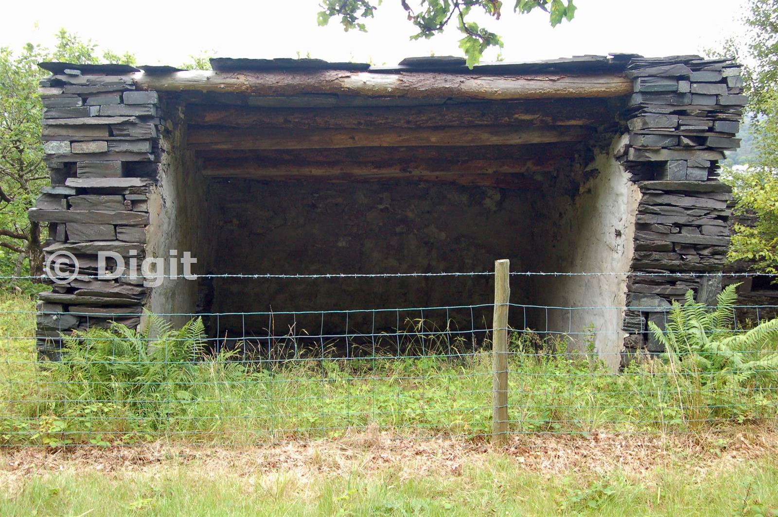 One of the shelters in which the slate was split and worked.