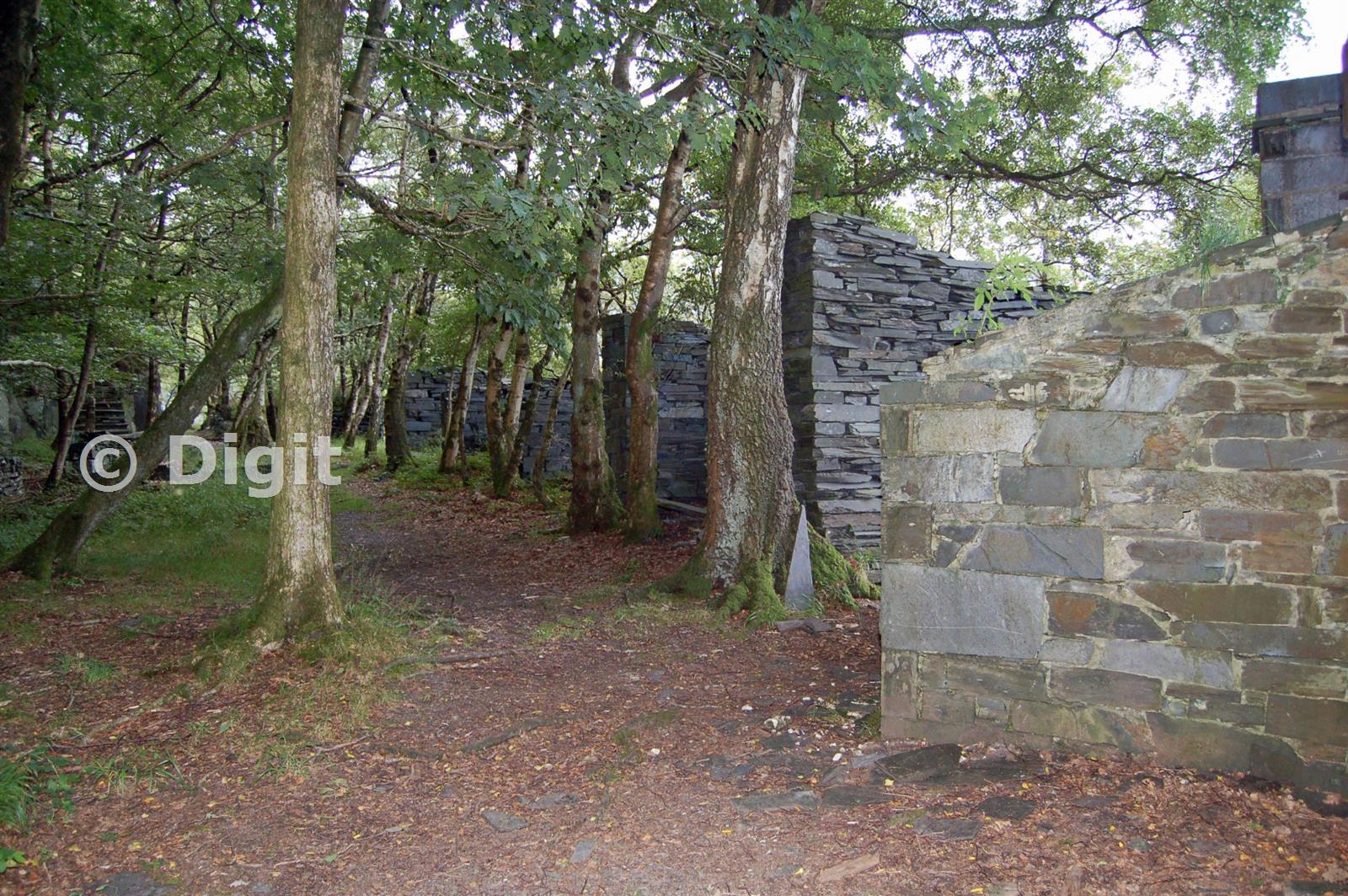 The V4 work area with the roofless gwaliau now standing in a shady grove.