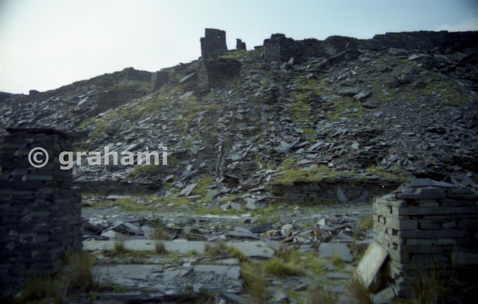 A and B mills were connected by a single-acting water balance. This was all that remained of the bed in 1981. Apologies for the fuzziness - I was trying a new wide-angle zoom, and it was not a great success!