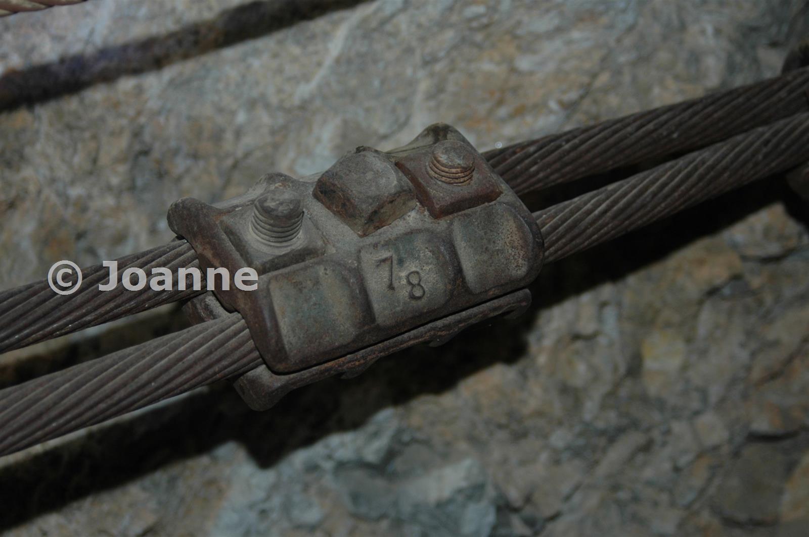 A cable used to secure the ore hopper