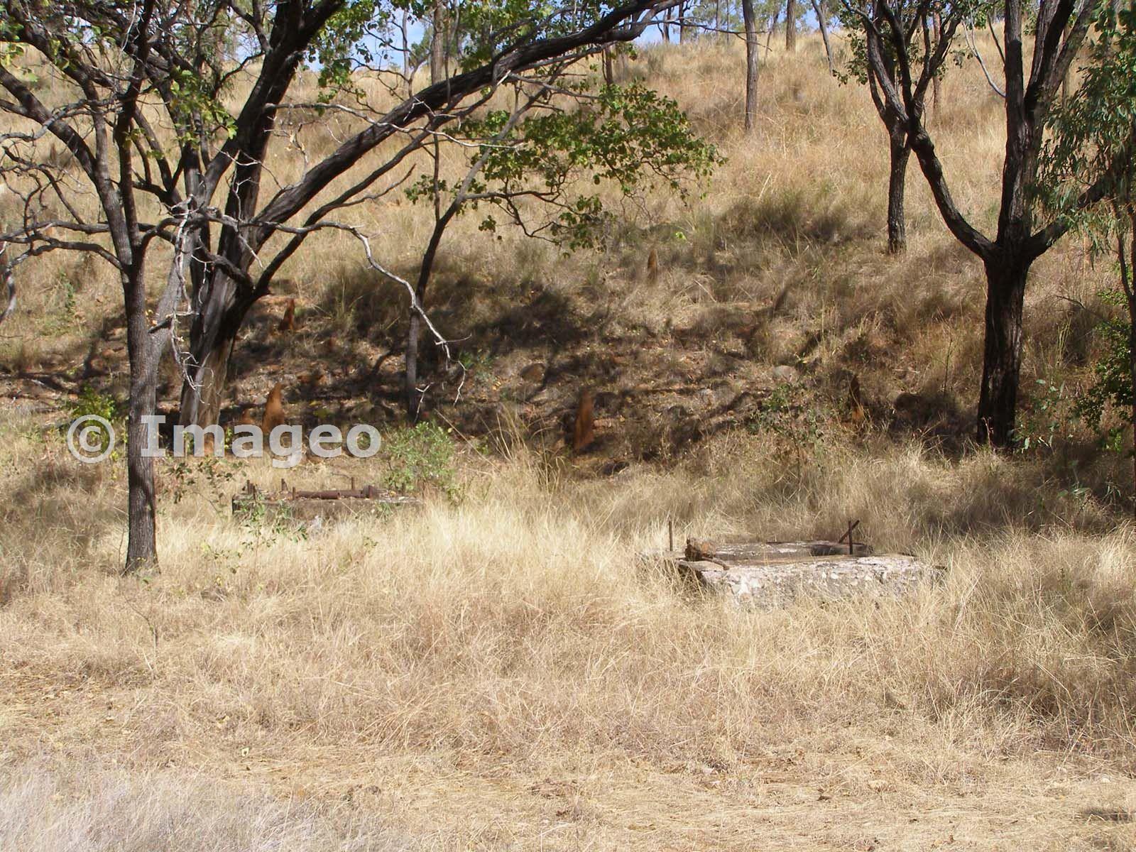 The only 'concrete' remains at Ruddygore. Probably part of a winder arrangement, well back from the edge of the open cut or a shaft on the edge of the cut.