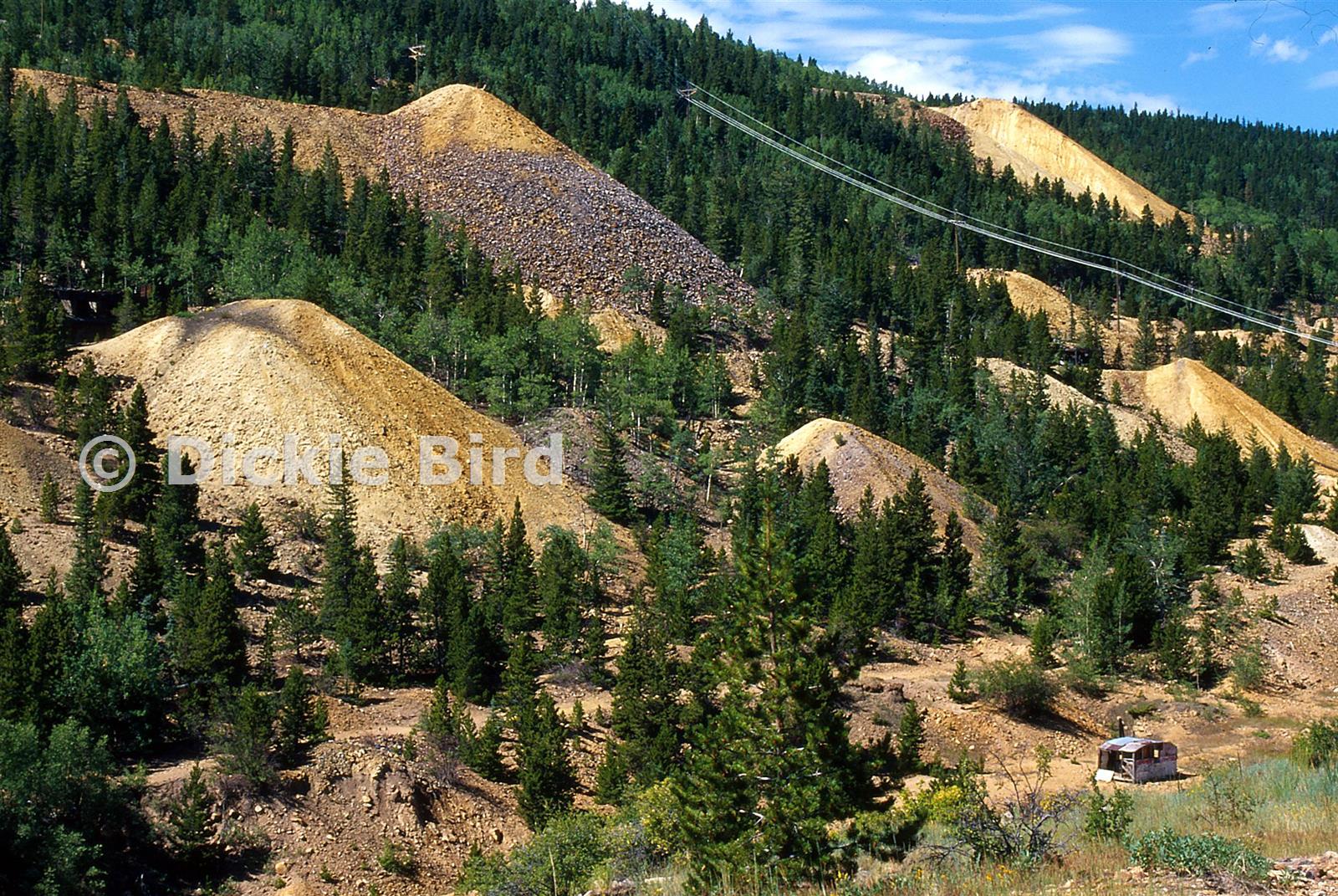 A rabbit warren of trial levels and shaft are denoted by the iron stained tips all along the hillside.