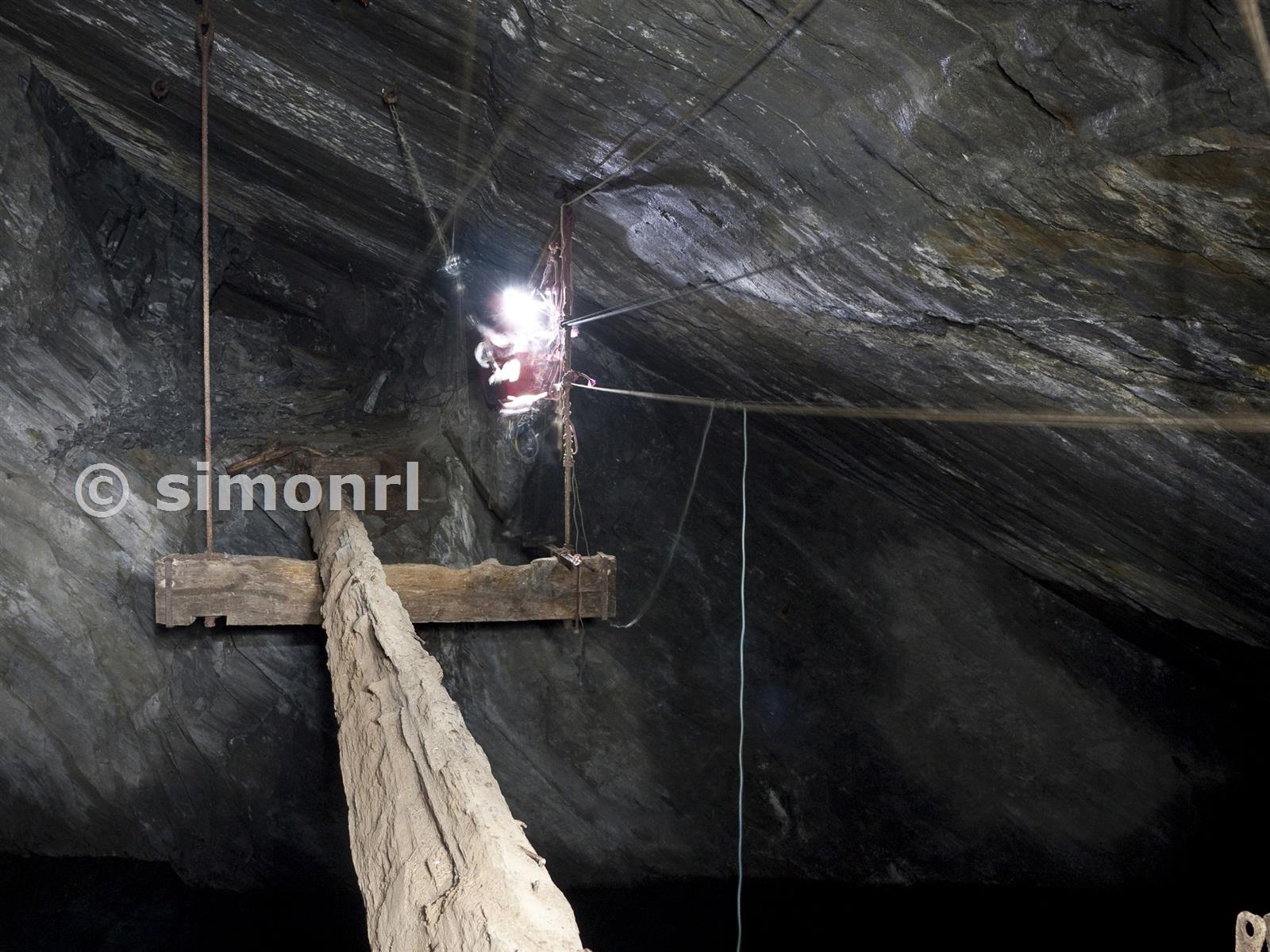 Matty crossing the bridge in Chambe A16E Croesor Slate Mine July 2011