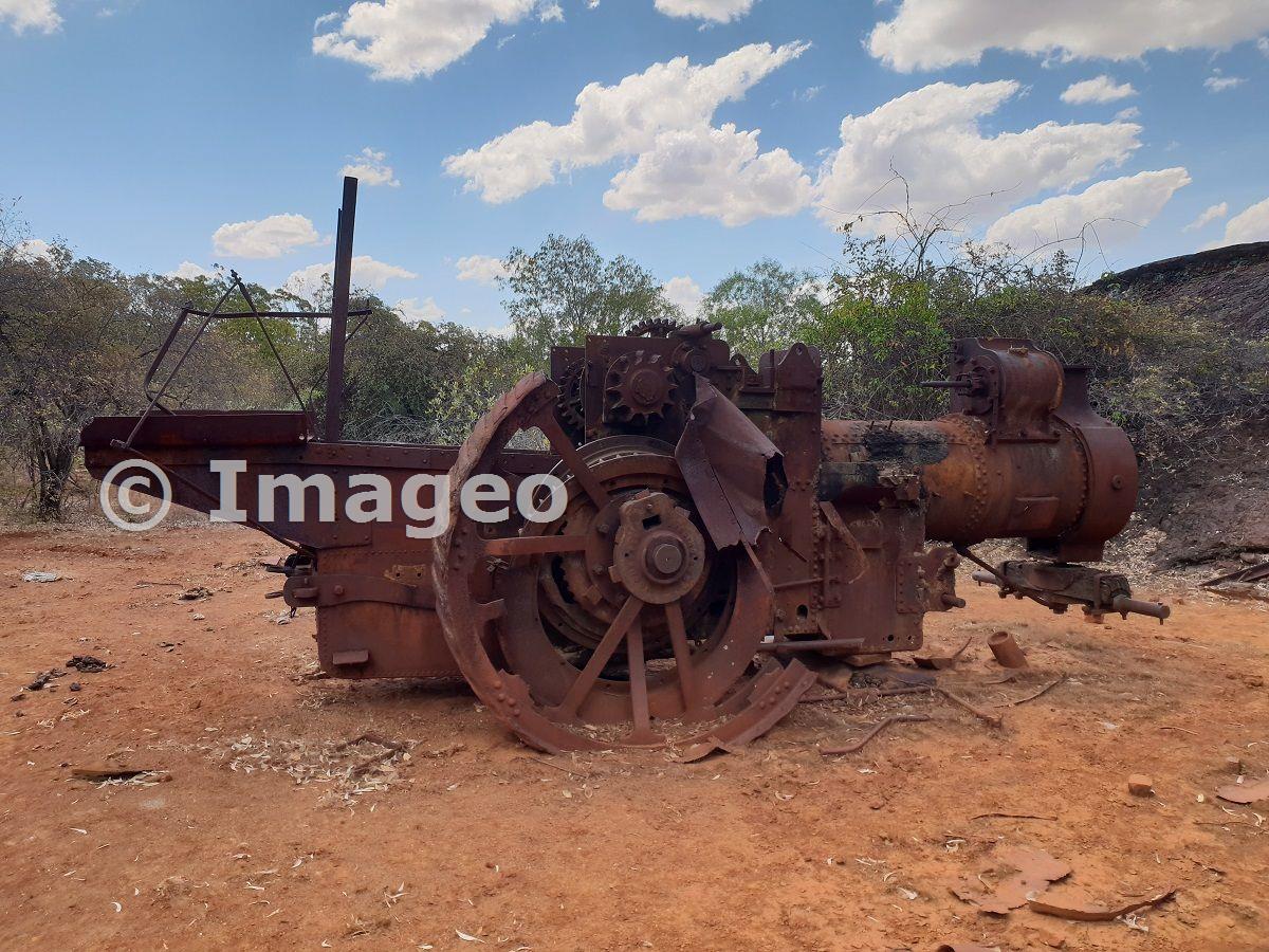 Immense amounts of wear are evident on what is left of the main wheel. The machine has probably been heavily damaged by souvenir hunters over the years.