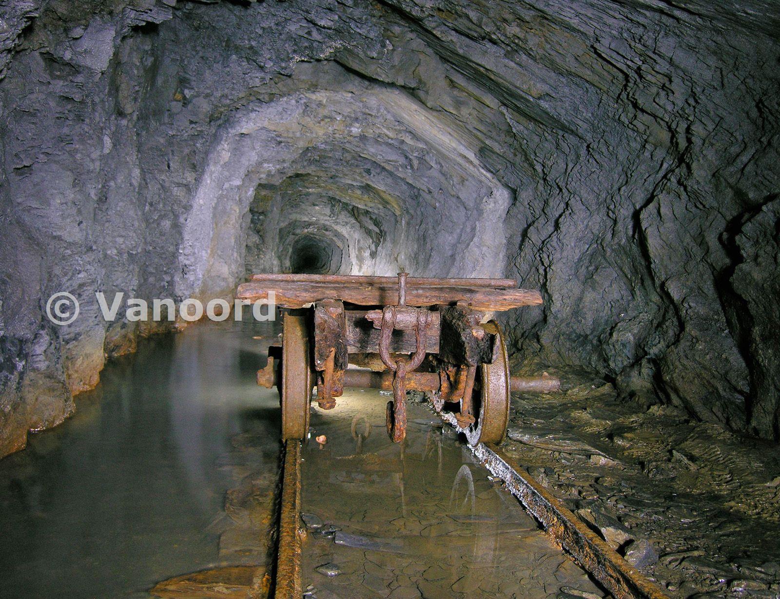 Sat in the lower adit - note the double-fanged wheels which are not fixed on the axle so that the truck can adapt to track of uncertain gauge.