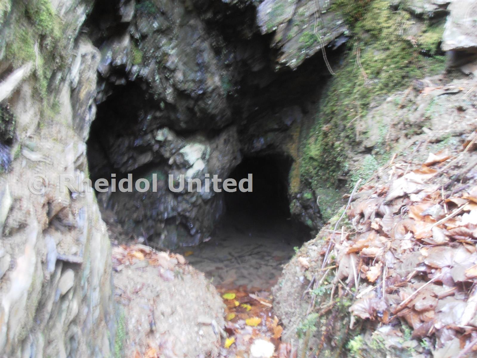 The tiny adit entrance and alcove on the left.