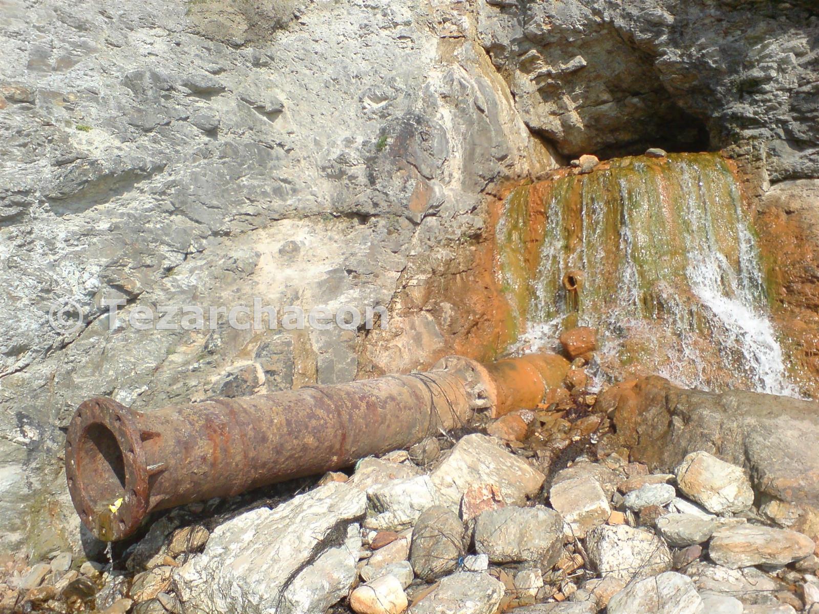 This is the main adit for Wheal Vlow. The adit has been bricked up heavily with a small gap at the top. Interestingly the large pipe comming out of the brick work is a section of the former rising main from the original Cornish beam pumping engine that used to be situated on the main shaft of the mine.