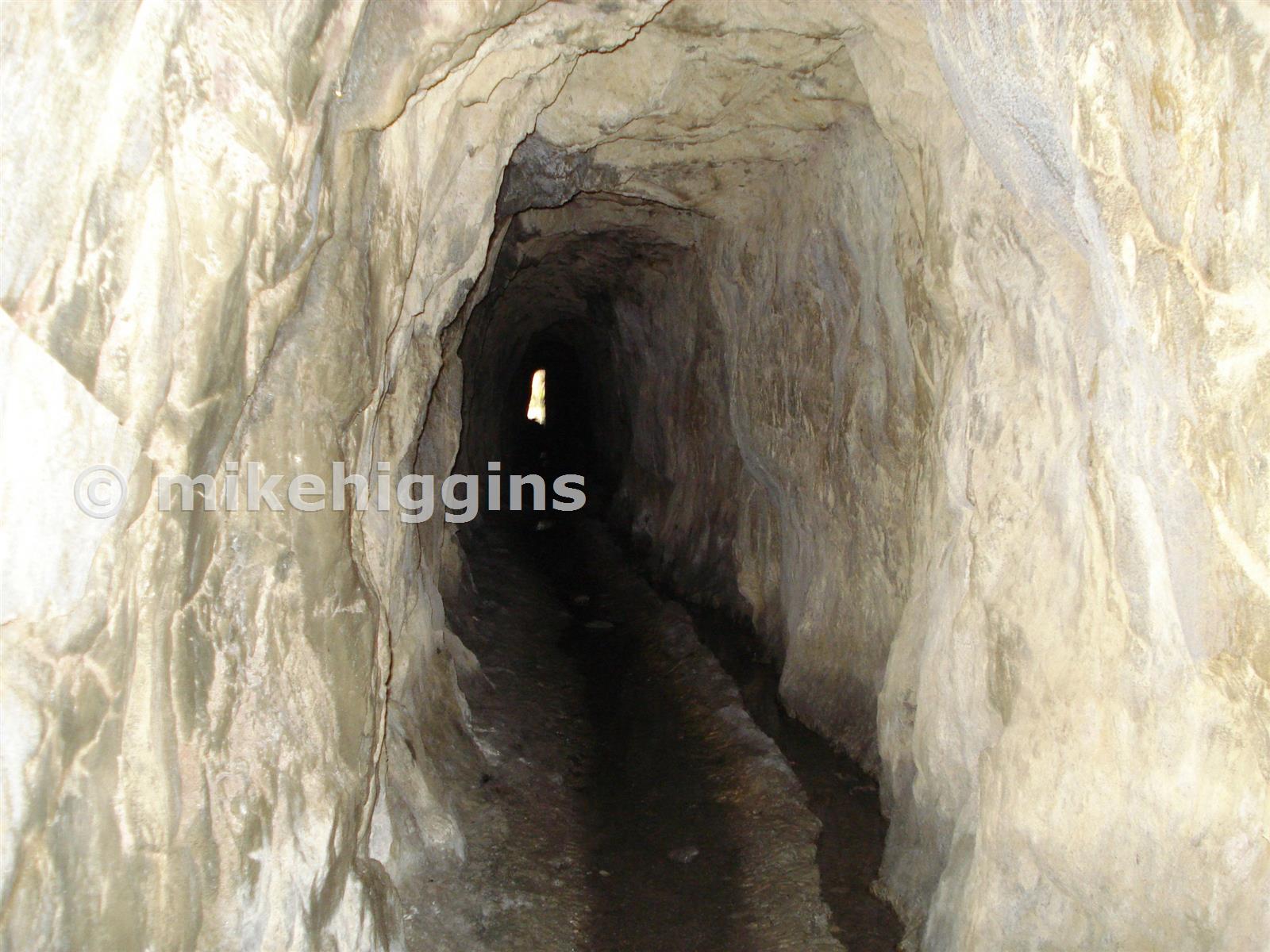 Looking back down the adit towards the entrance - note the gully on the right hand side down which most of the water flows.