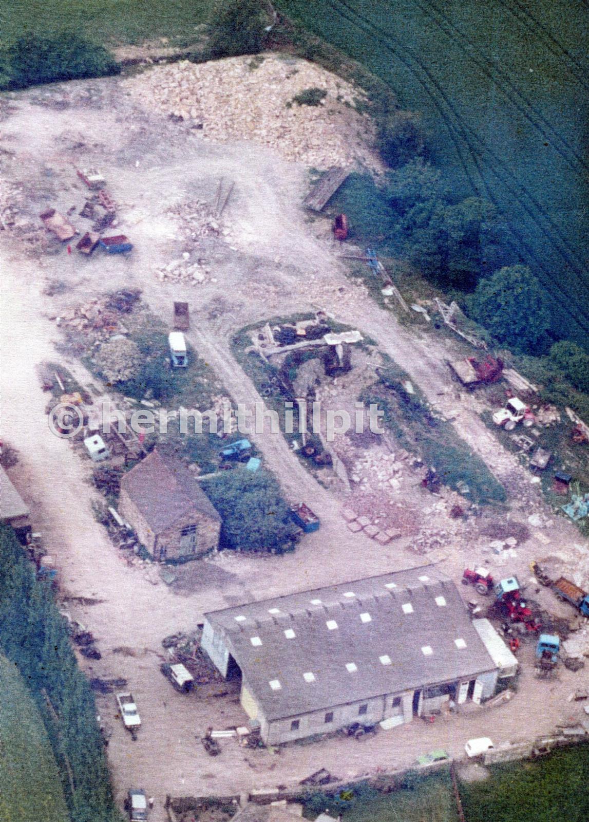 Aerial view of site of Hermit Hill Colliery. Small building in middle is Old Engine House.