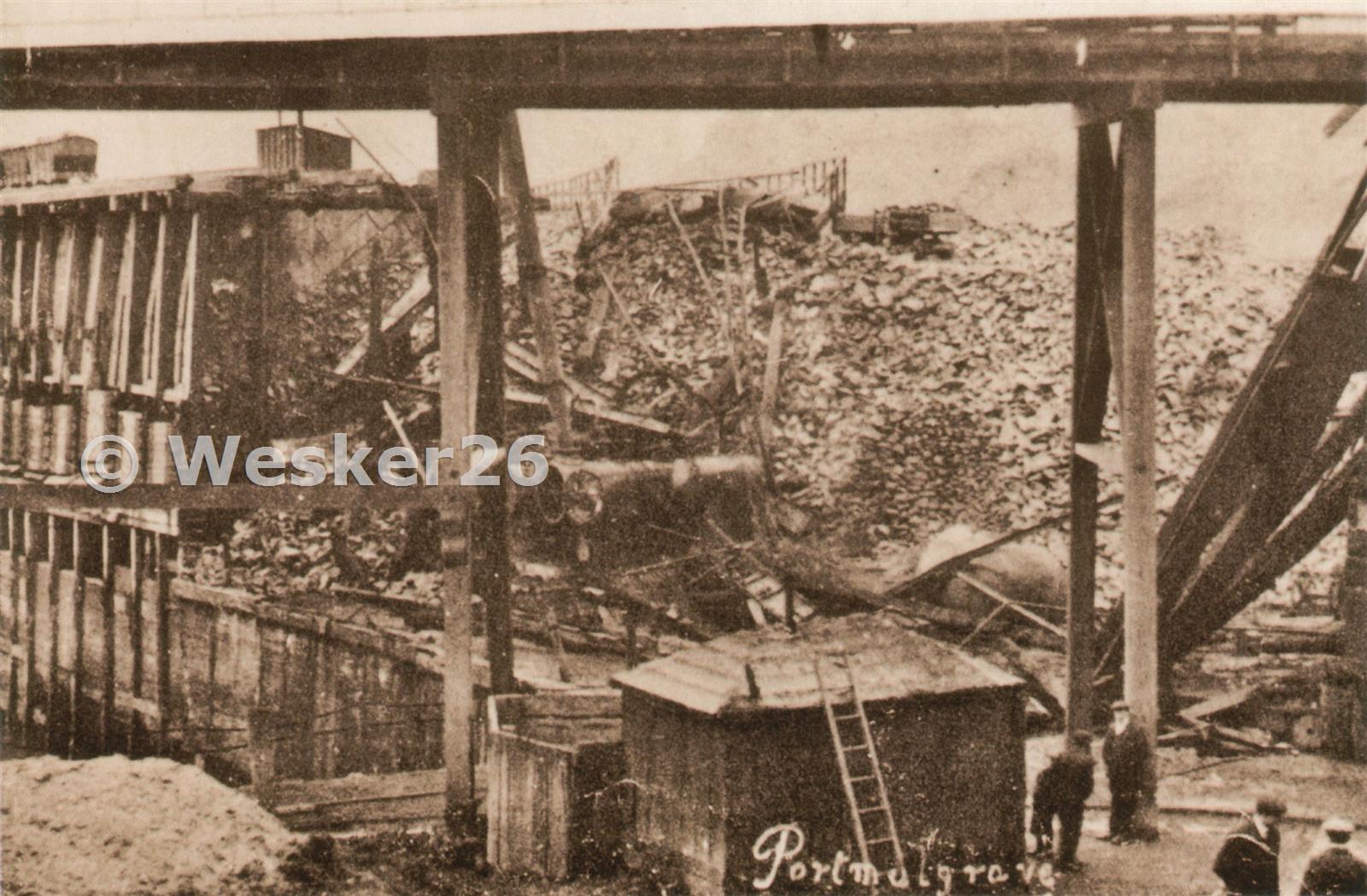 A better view showing the destroyed engine room and boilers for the rope haulage system. Note the large mound of ironstone to the right was usually built up when sea conditions prevented ships docking and taking normal shipments away.