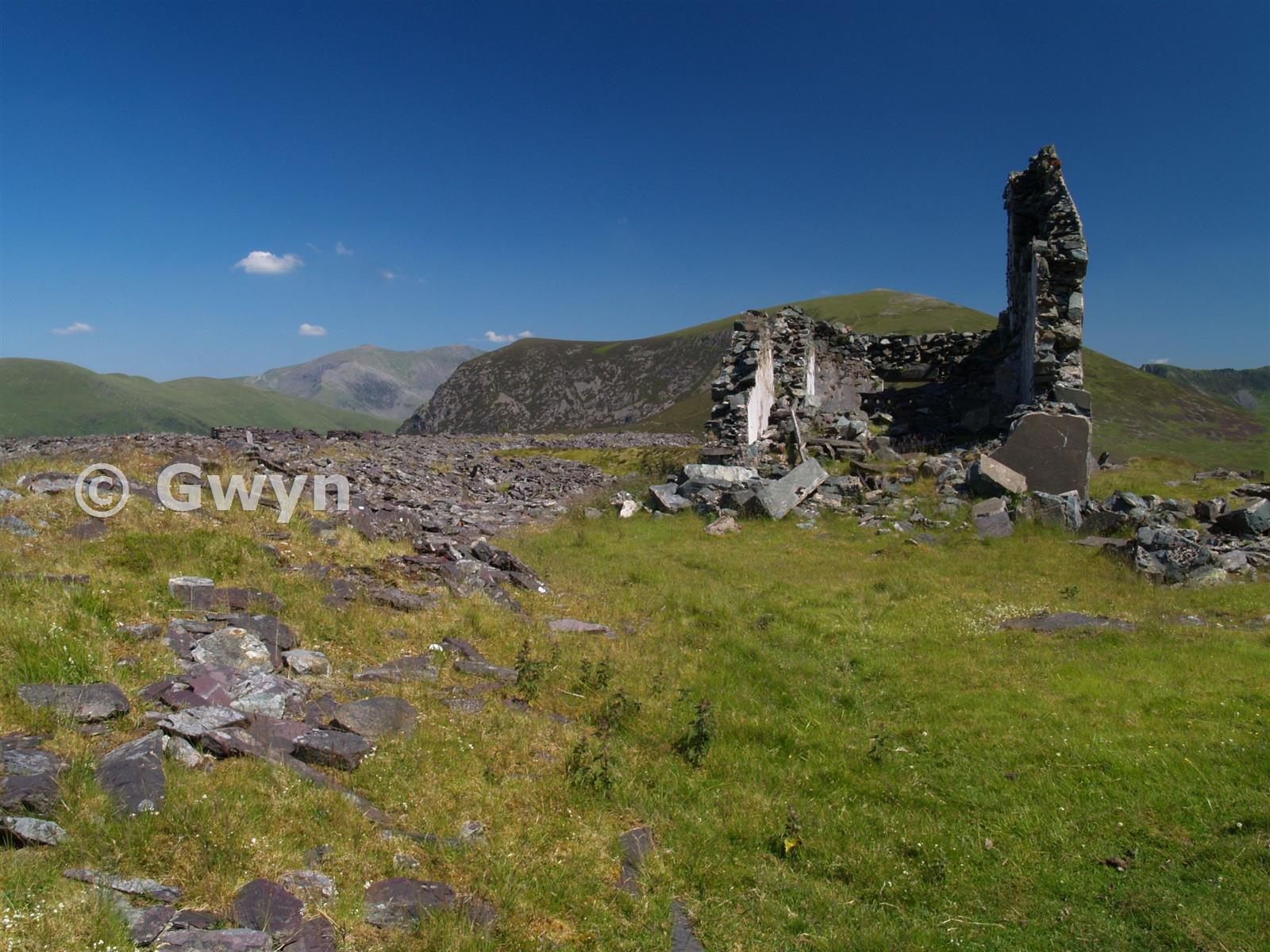 Landscape view from the top level with the remains of the electricity sub-station on the right. Snowdon, on the left, in the far distance. June, 2009.