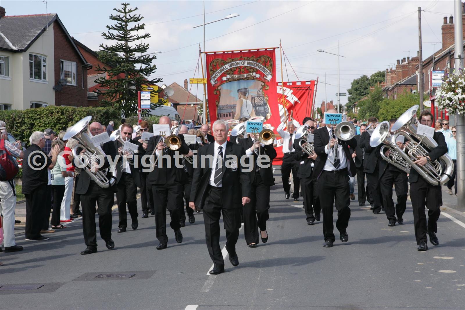 Kippax Brass Band Leads the march. Keith Fairburn is the Band leader. 'What a Great Day'