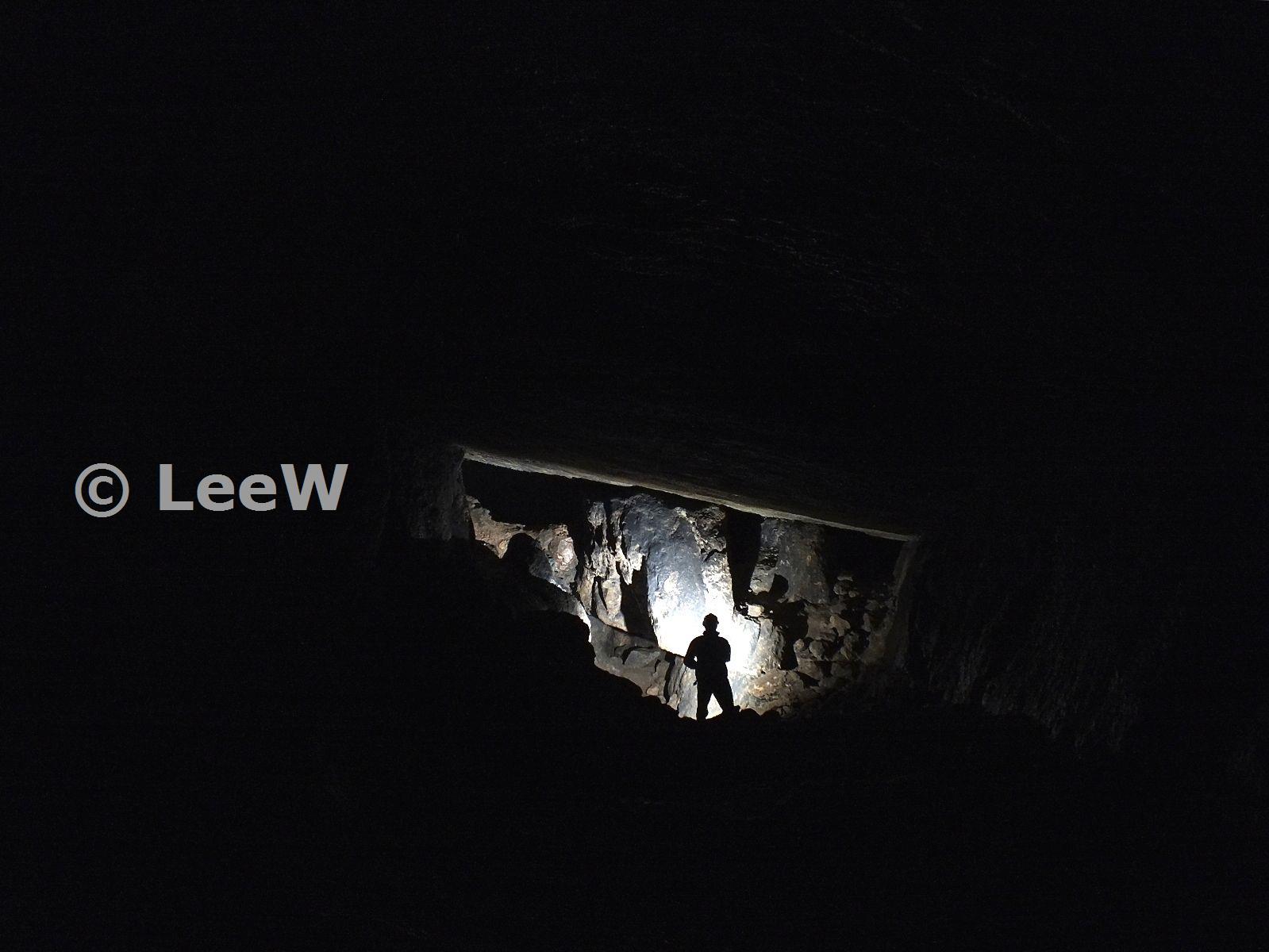 Flashgun used to show the size of the cavern/mine. This is the same camera view as the one lightpainted. Photo from my first underground photography visit - December 2012
