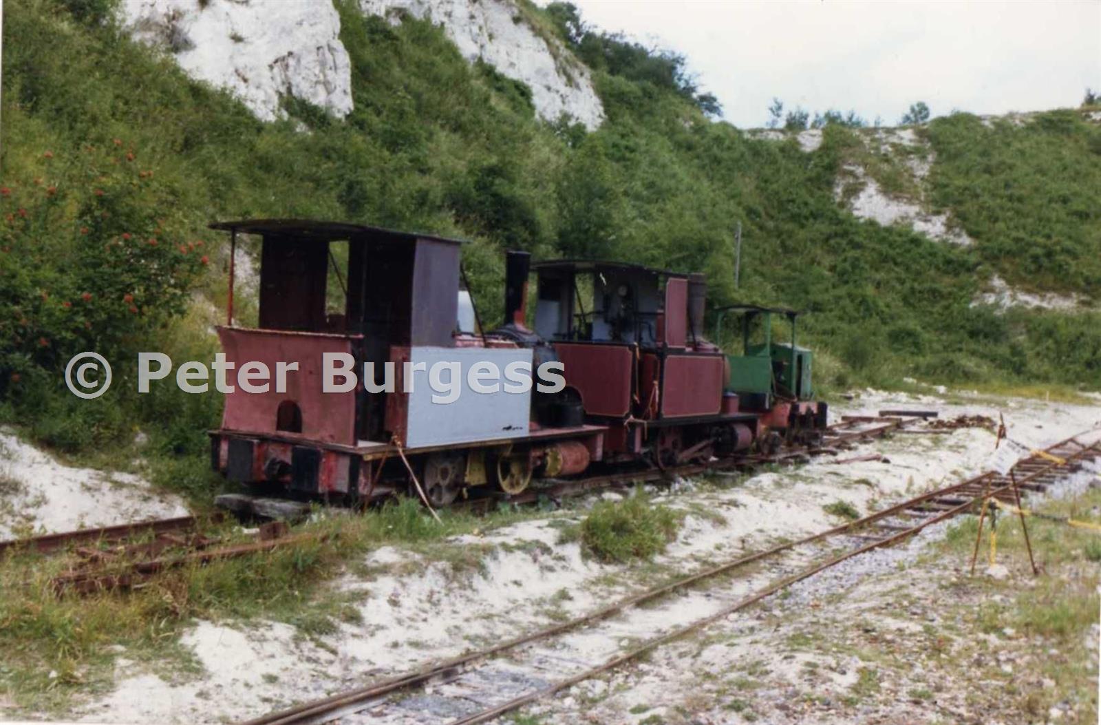 Three locomotives from the Betchworth Chalk Pits in Surrey, stored at Amberley Museum.