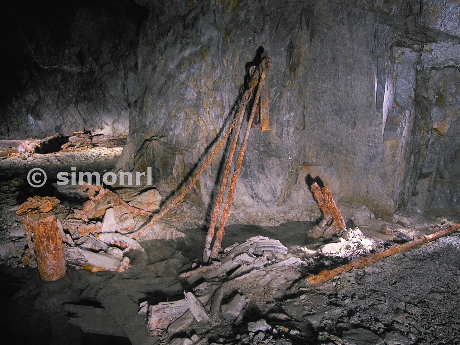 Remains of the angle bob at the eastern engine winze. 16/05/2006 (camera suffered from fogging on this trip hence some photos are either a bit foggy or appear over processed - sorry)