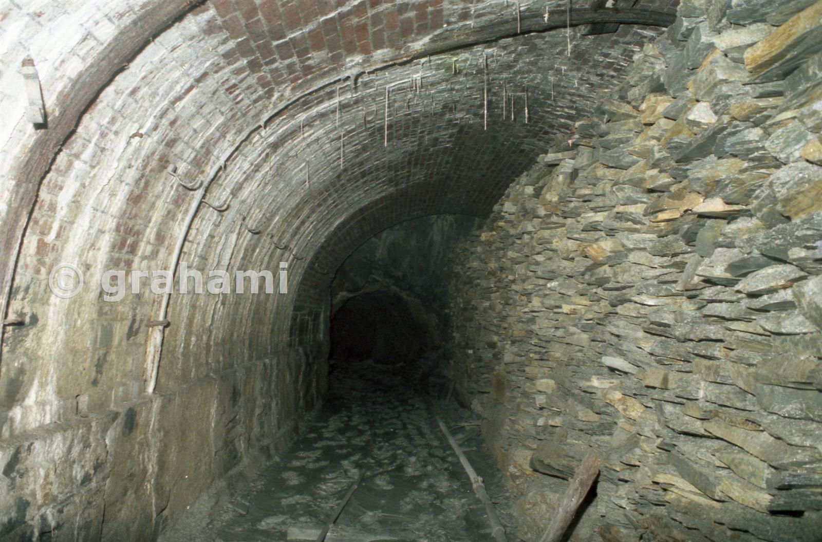 The eastern side of the archway appears to have been subsequently propped up or reinforced with the additional slabs shown here. Beyond the slabs can be seen the point the level passes into the solid rock.