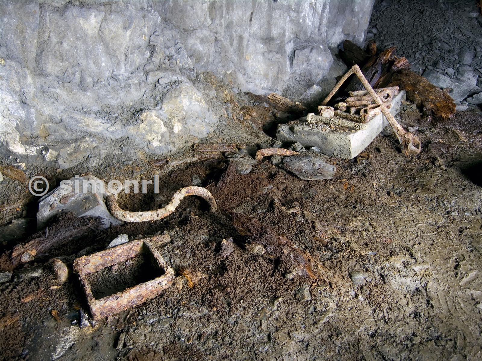 Various artifacts, level 15c chamber 10c All locations worked out from survey in Slates from Abergynolwyn, courtesy of Thorpey Bryn Eglwys 11/05/2009