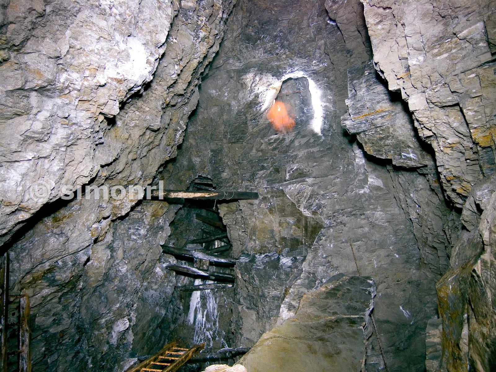 The pitch from the mid level to the deep adit level is a perfect 60 foot free hang, here is Timberman ascending, Bwlchglas Lead Mine. 15/05/2009