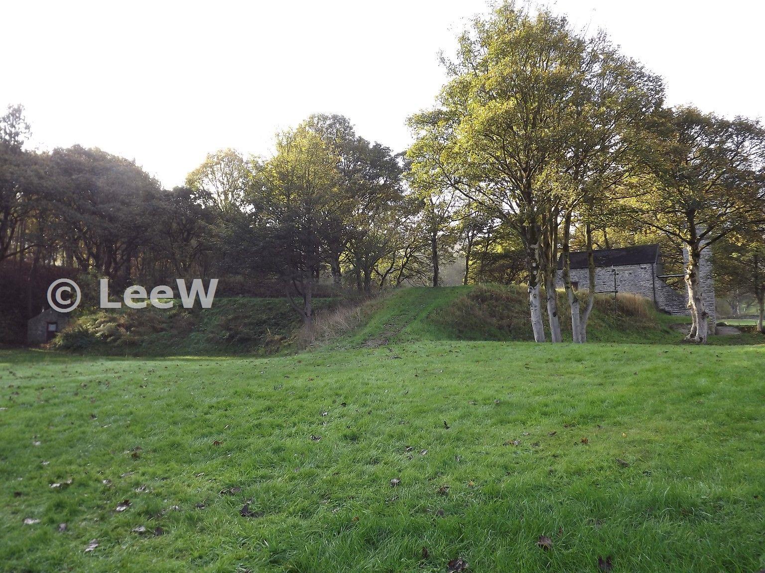 The engine house to the right, shaft mound centre and a small building (uncertain if mine related) to the left. The remains of a possible magazine are behind the shaft mound. Oct 2011