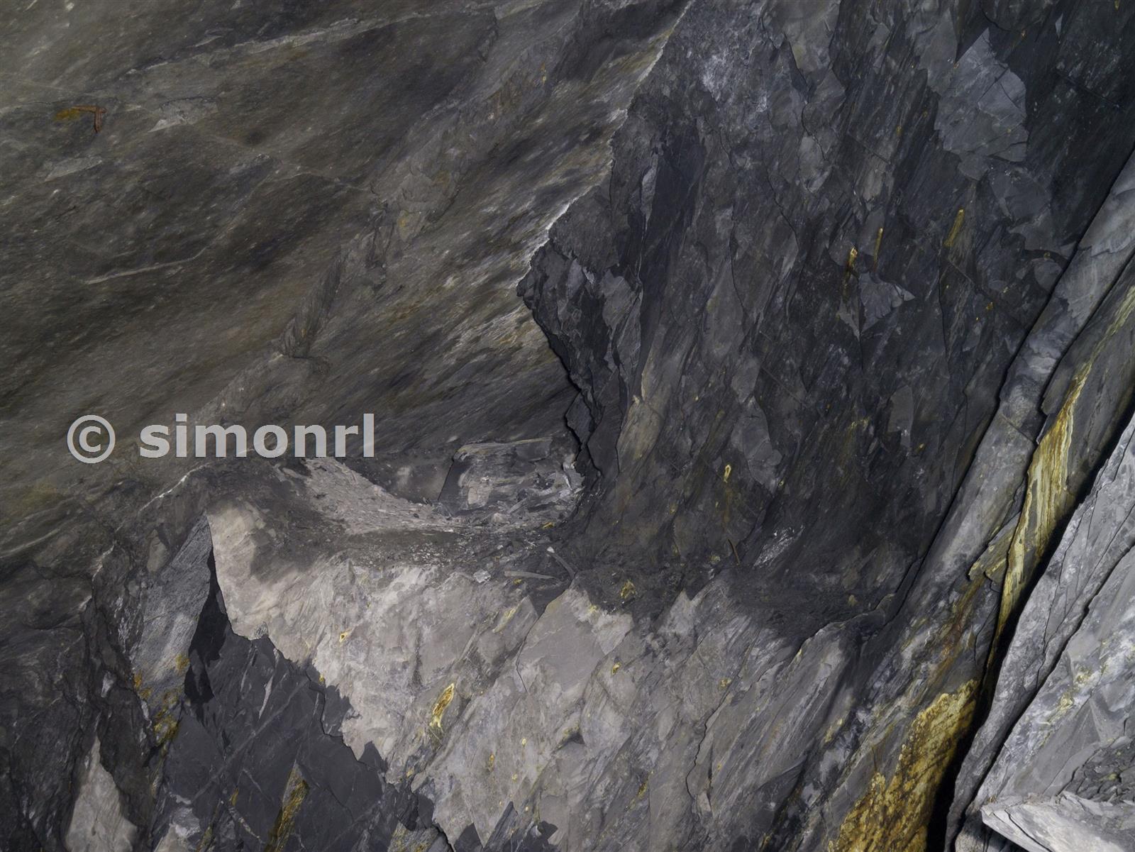 Ledge on B floor Ch 3W Cwmorthin Slate Mine February 2015