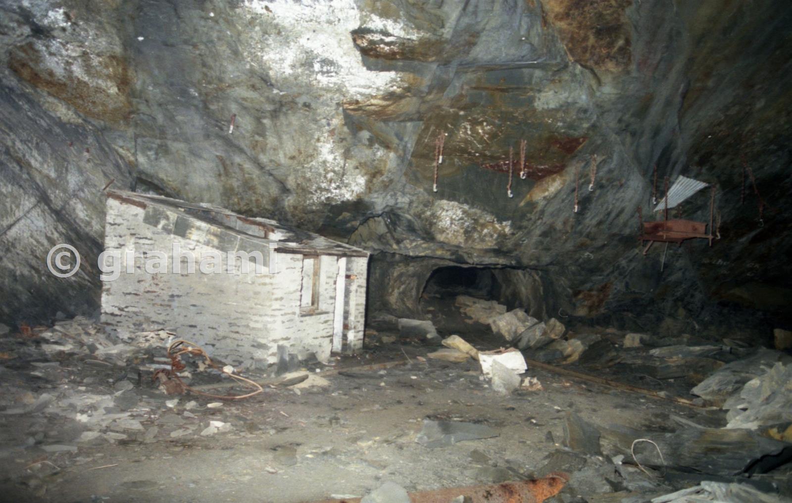 Looking North towards the balance level, showing the old hut. Just visible at the bottom of the picture is a pipe...
