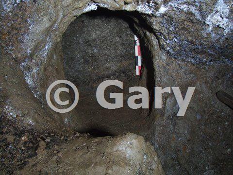 A really ancient back filled tunnel on the 6ftm level, not developed because it goes under neighbours land!!