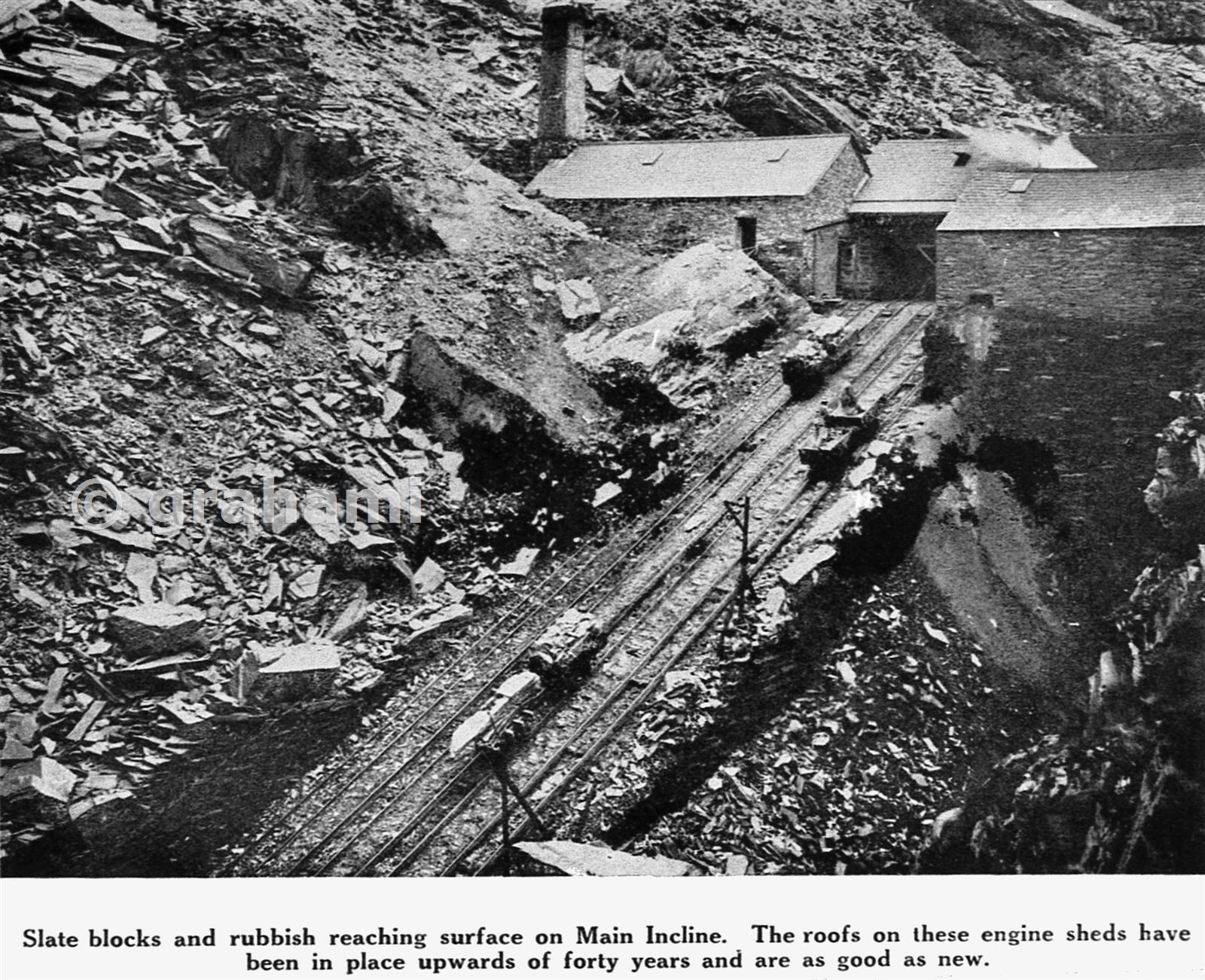 Again from a 1920's publicity brochure. My guess is that the steam is from an engine driving a compressor, as the engine and boiler house was at this time on the opposite side. Note the four tracks!
