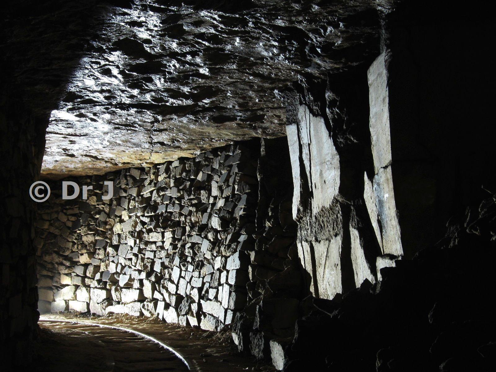 Passage in Clift Quarry, backlit to show wall of 'deads'