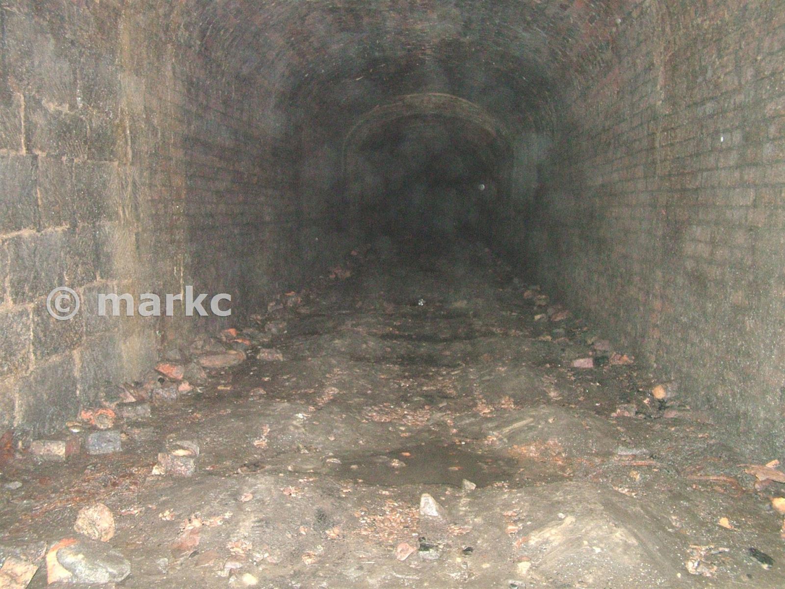 Old railway tunnel. Wagons were pulled along by a chain system. Tunnel is blocked at far end. Only accessable from common end via hole in roof.