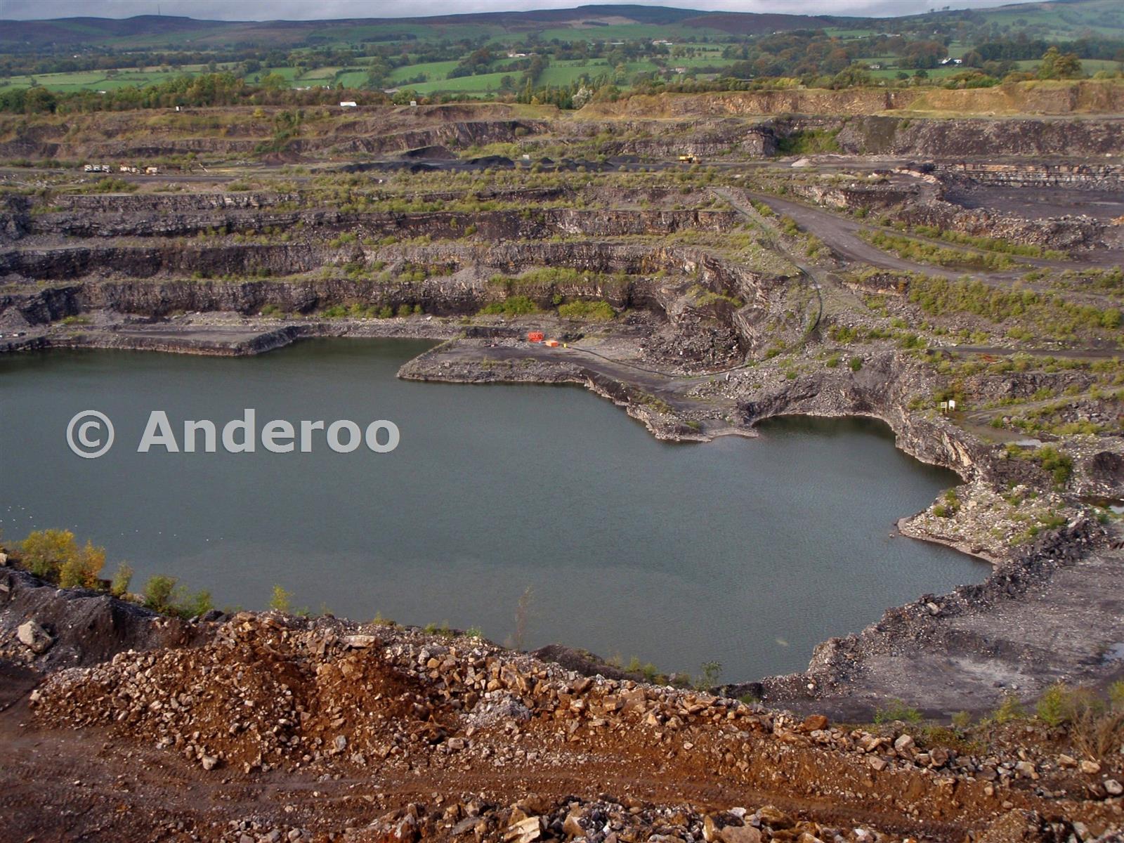 permissions to work 50m BOD...shows most of area worked, some of it flooded. The benches coming down are Bankfield, the top/ far side is Lanehead Quarry