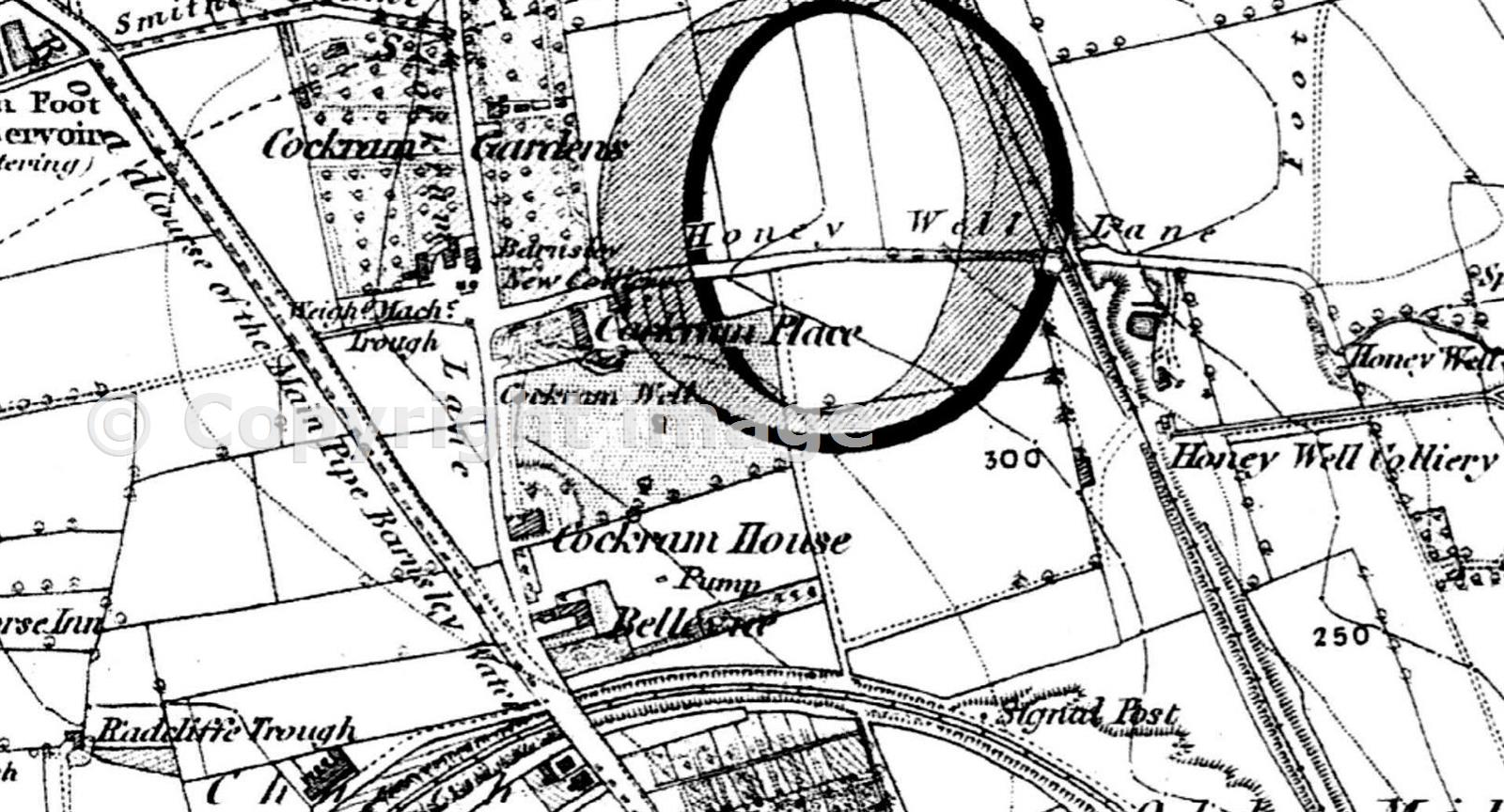 Small colliery shown on the 1850 OS map at the end of Honey Well Lane.