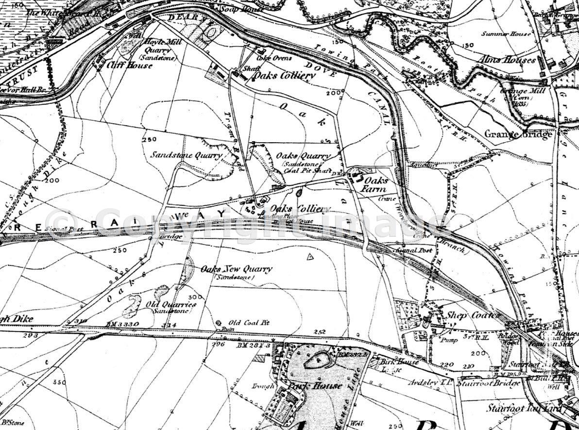 The northernmost site labelled on the 1850 OS map as "Oaks Colliery" next to the Dearne and Dove Canal subsequently became Rylands Main, Barnsley Main then finally Barrow Colliery in the 1980s