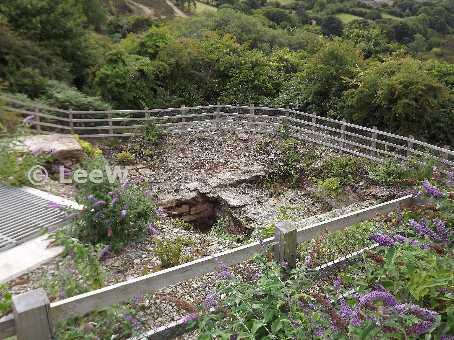 Sump shaft and engine shaft within the fenced enclosure. One shaft seen to left the other is below. July 2011