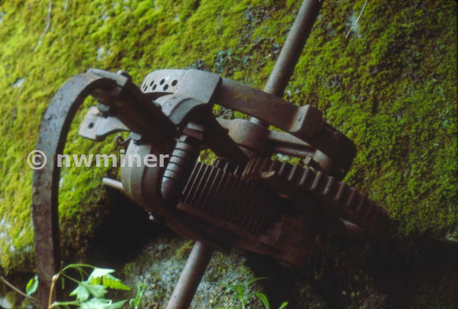 Saw mill machinery near camp building in basin above mill - photo 1982.
