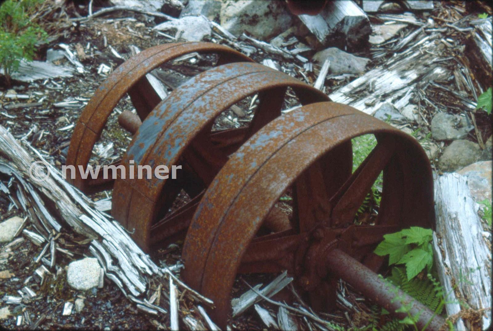 Shaft, pulley wheels in mill ruins - photo 1982.