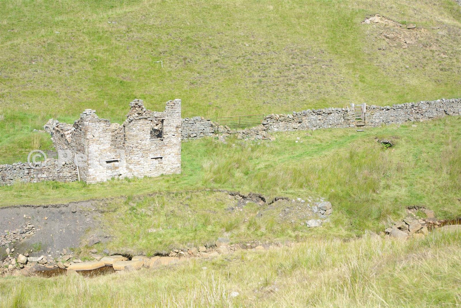 View looking north, August 2011. Shows site before repair work started on mine shop