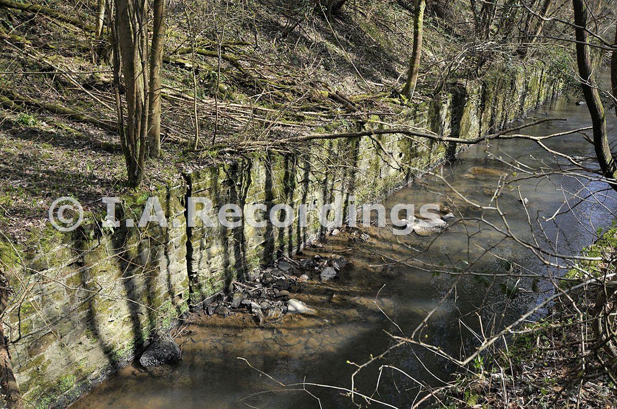 What the wall should look like! Channelling the stream past the colliery screens and sidings area.