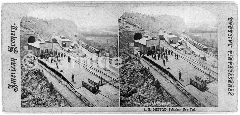 Bird's-eye view of Pennsylvania Railroad at Mauch Chunk (now Jim Thorpe) btween 1870-1920