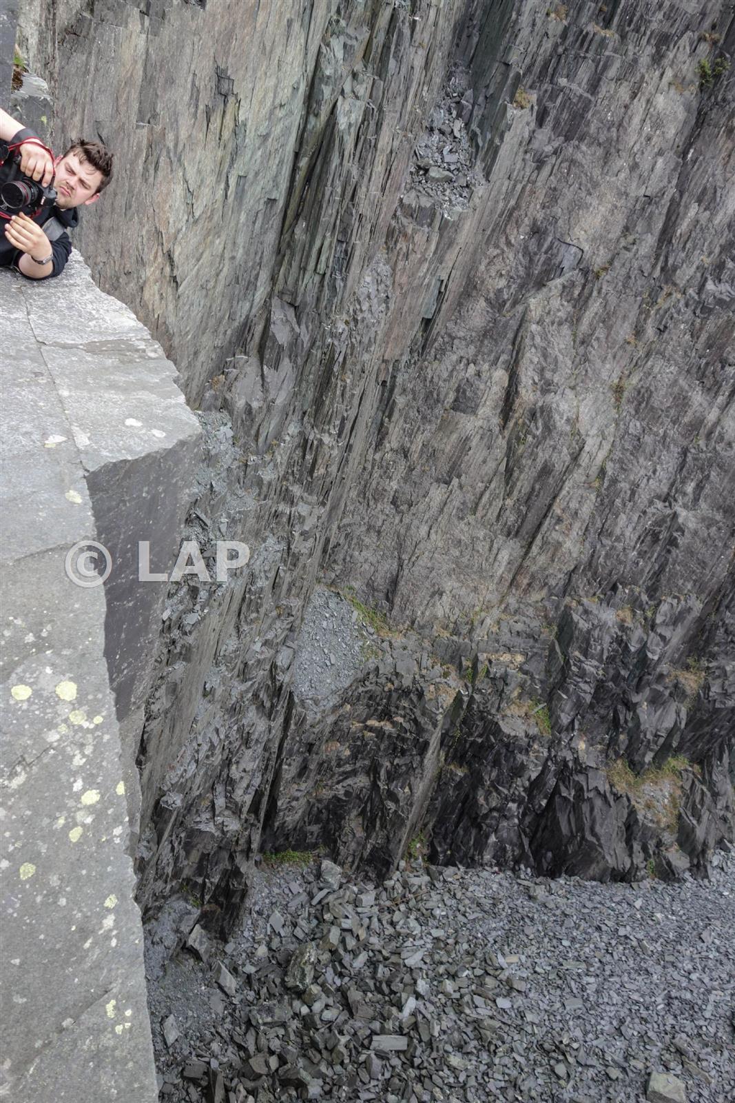 Geoff looks down taking photos, one of the UK's deepest pit quarries.