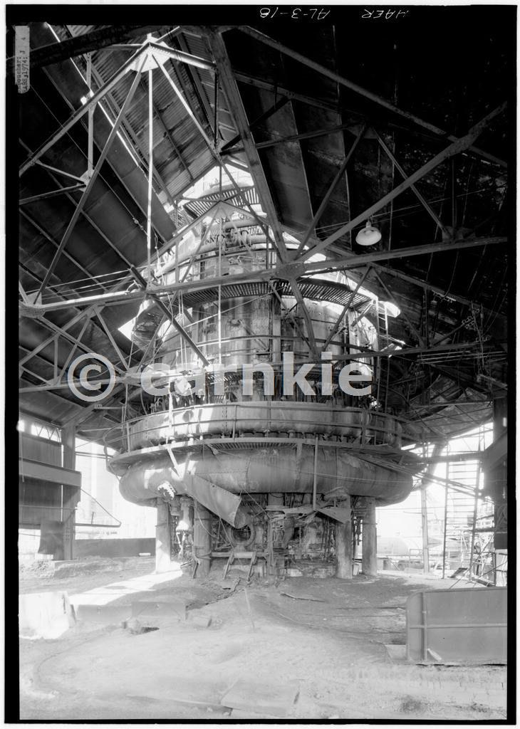 March 1974. DETAIL VIEW FROM THE SOUTHWEST, SHOWING THE BASE OF THE #2 BLAST FURNACE, TAKEN FROM WITHIN THE CASTING SHED. Courtesy Library of Congress, Prints & Photographs Division, HAER, Reproduction number HAER ALA,37-BIRM,4-18