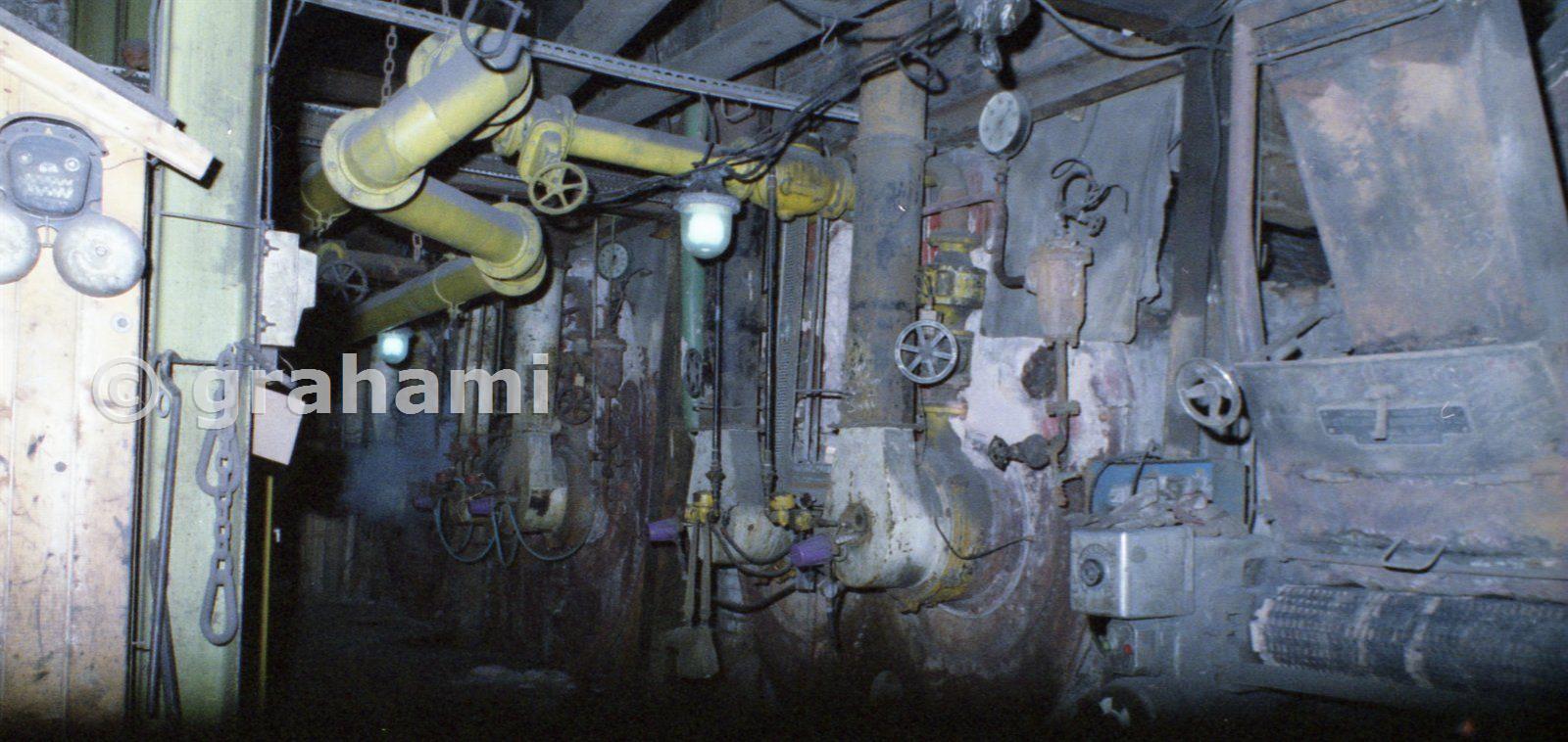 Methane fired boilers using the pit's own methane from the methane drainage system. Chain grate coal fired boiler on right.