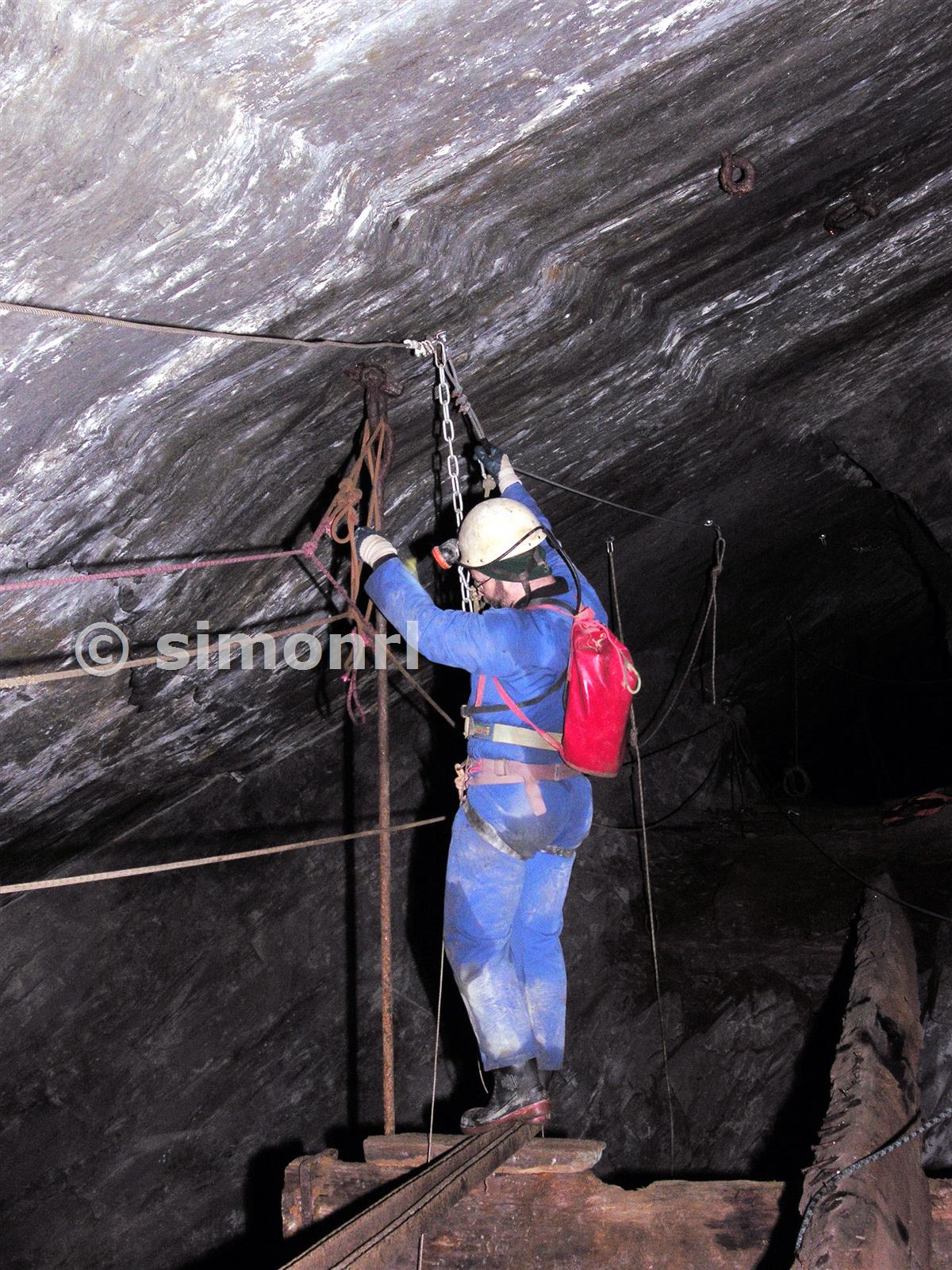 Bri on the BoD, on the central support, contemplating the zip wire to cross the second half.