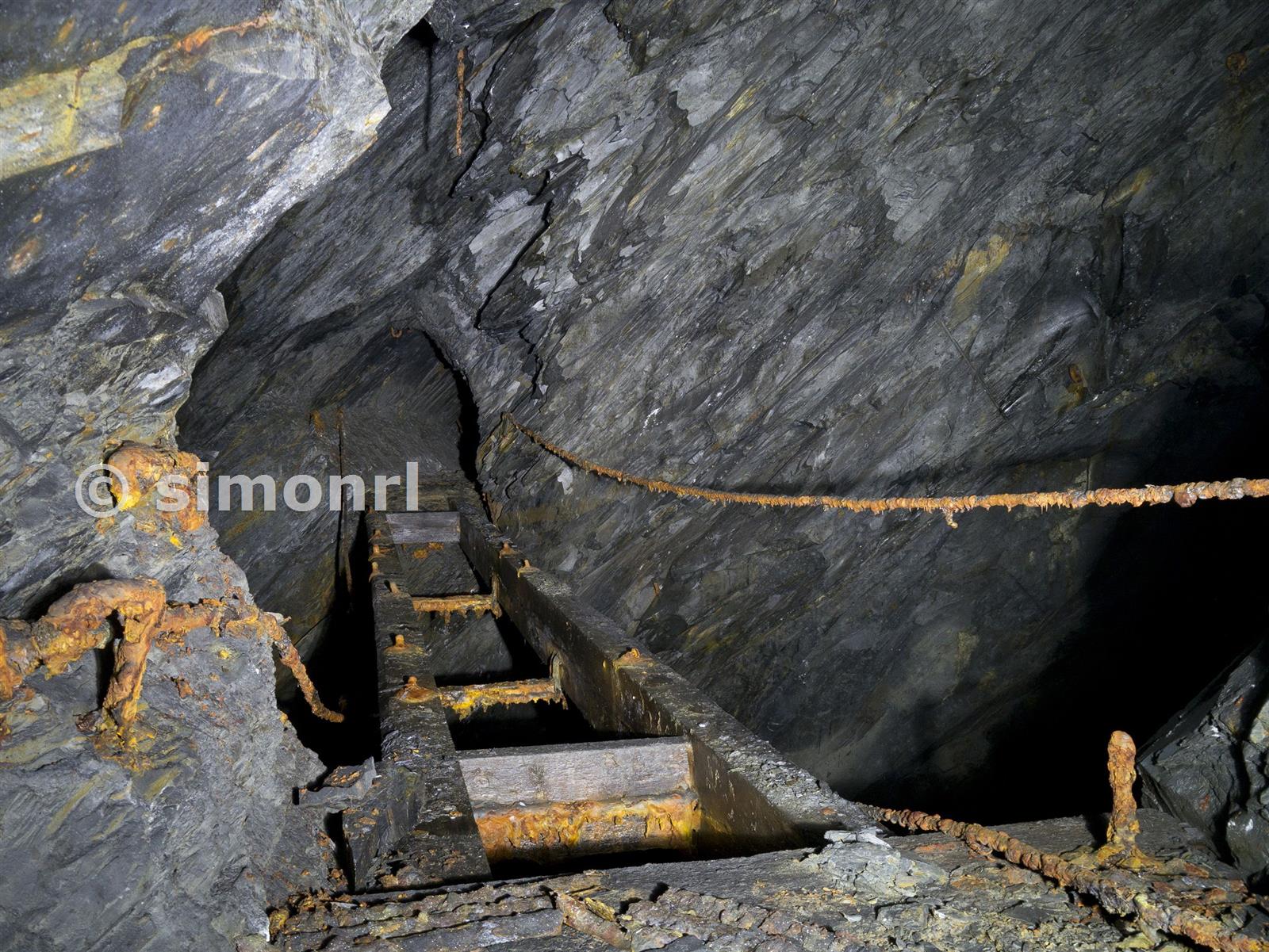 Bridge over 7E on B floor. Cwmorthin Slate Quarry January 2014