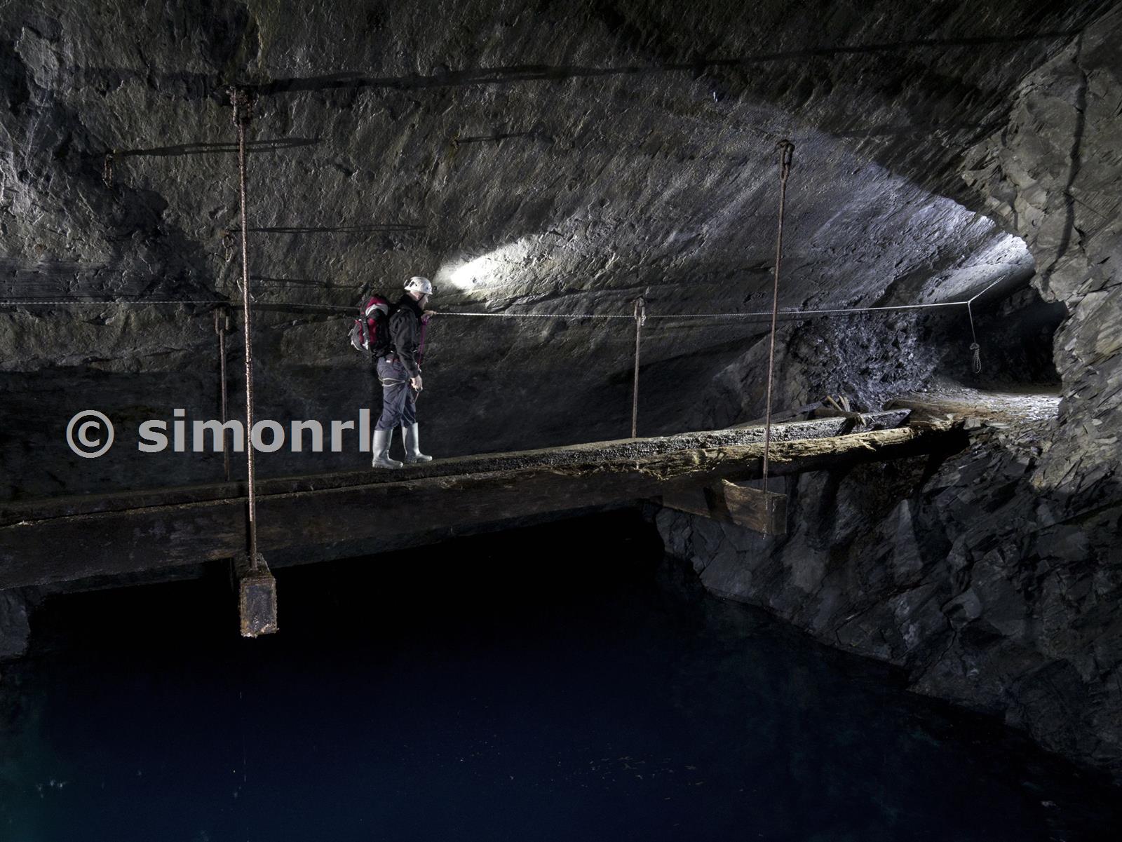 Crossing the bridge in Chamber A10E Croesor Slate Mine September 2015
