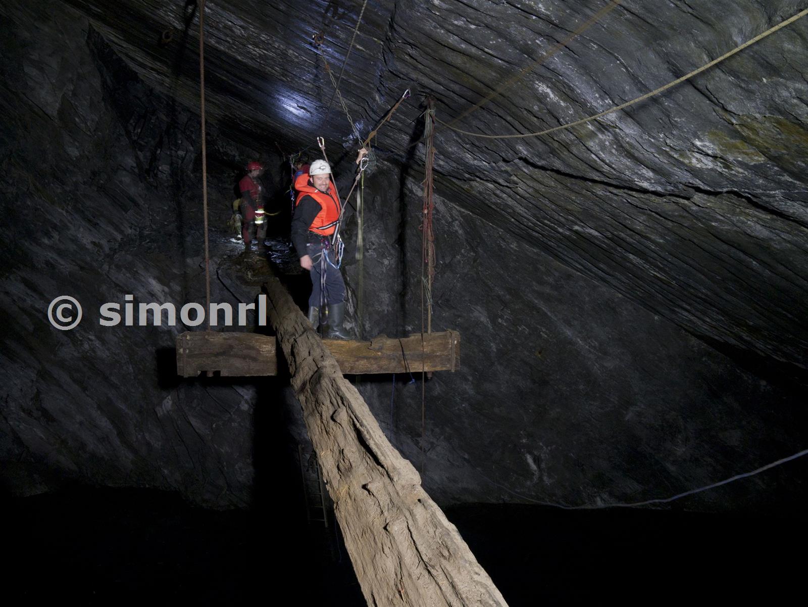 Crossing the infamous Chamber A16E bridge Croesor Slate Mine September 2015