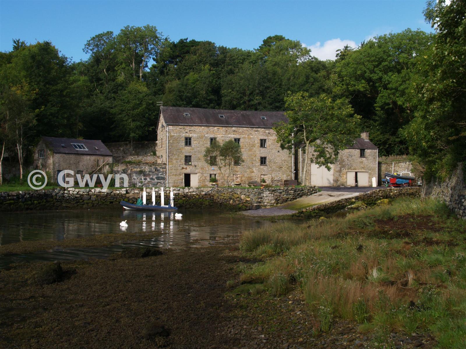 The buildings housed the Welsh Imperial School Slate factory. Power came from two water wheels with steam back-up. Slate and timber were brought in by sea and the finished product exported the same way, although in later years the product was taken to the railway at Llanfair PG. Now a private residence. September, 2008.