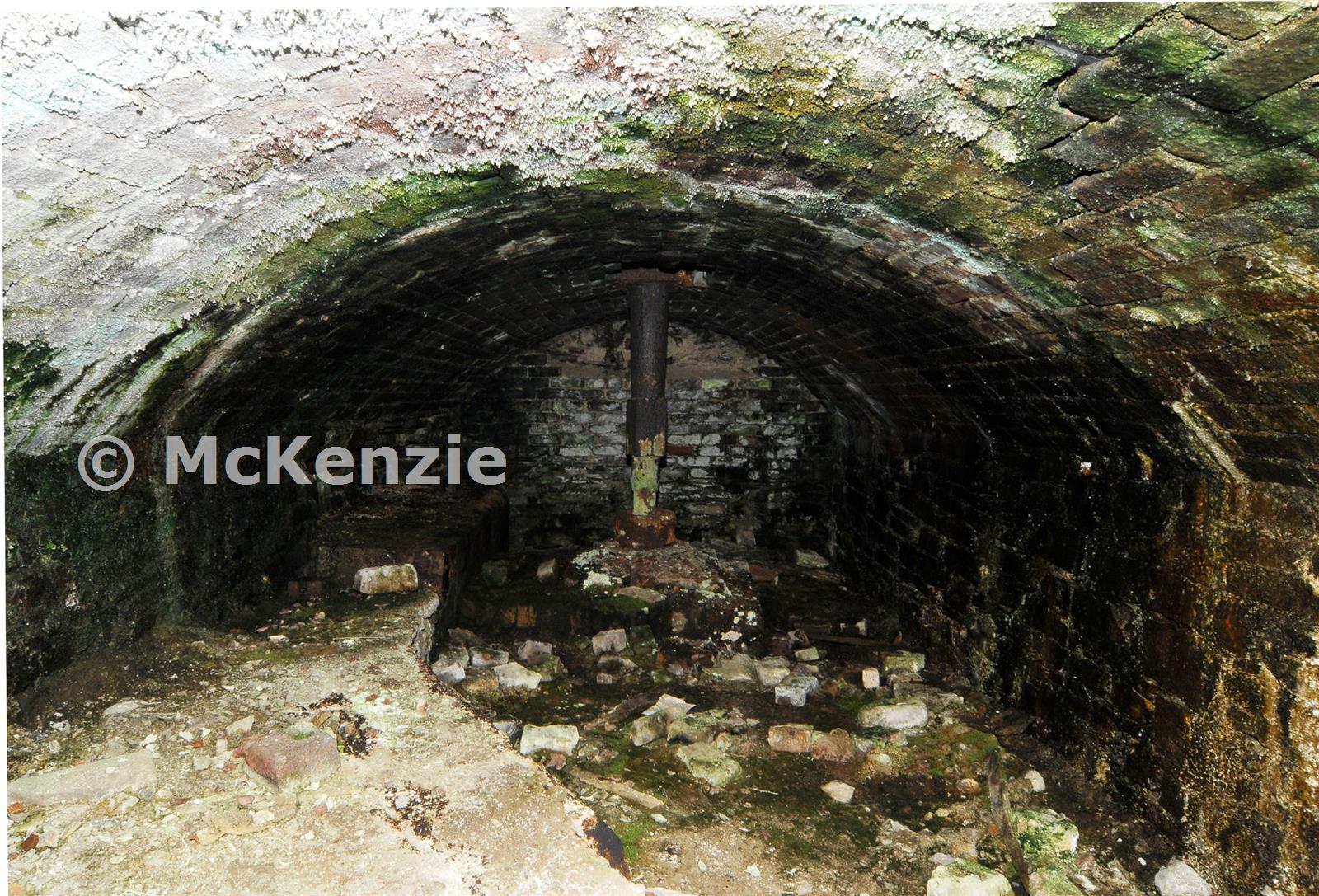 The interior remains of one of the two Brunton Calciners at DGC 3/5/2009. Arsenic crystals can be seen on the roof surface.