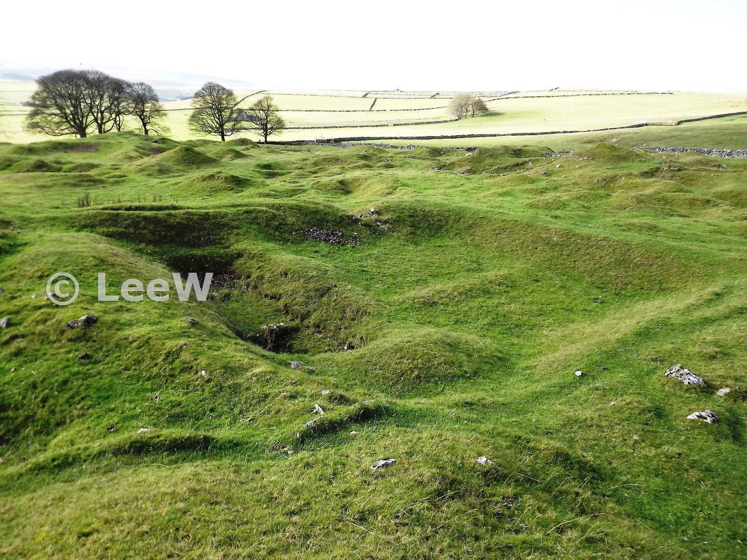 The square buddle (area to the right) and two adjoining sunken features to the left. Oct 2011